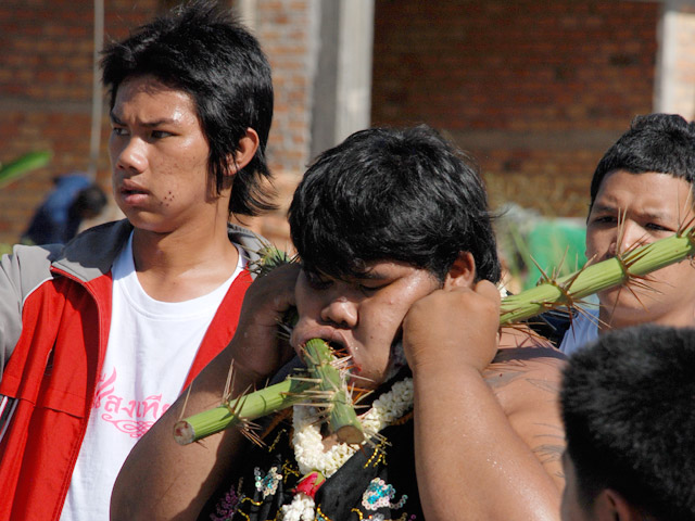Вегетарианский фестиваль зрелище не для слабонервных. Участники, шествующие по городу, протыкают тела самыми неожиданными предметами: гигантскими иглами, мечами, кинжалами, металлическими прутьями, пляжными зонтами, цепями и другими колющими и режущими предметами. Наиболее популярным является прокалывание щек, которые не являются жизненно важным органом. Вечером участники фестиваля бегают босиком по раскаленным углям.